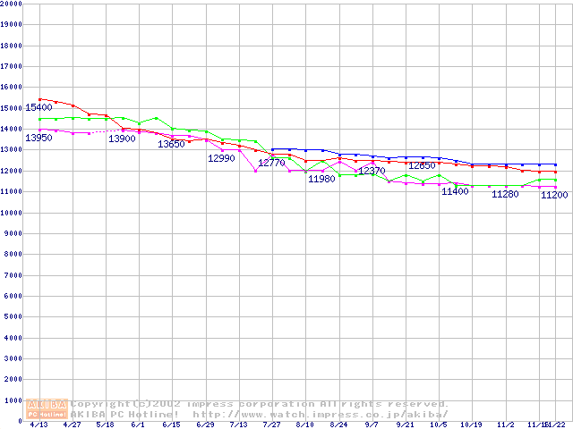 | [↑前グラフ]: | 2.5インチHDD 20GB~30GB未満(9.5mm厚)の最安値推移 |