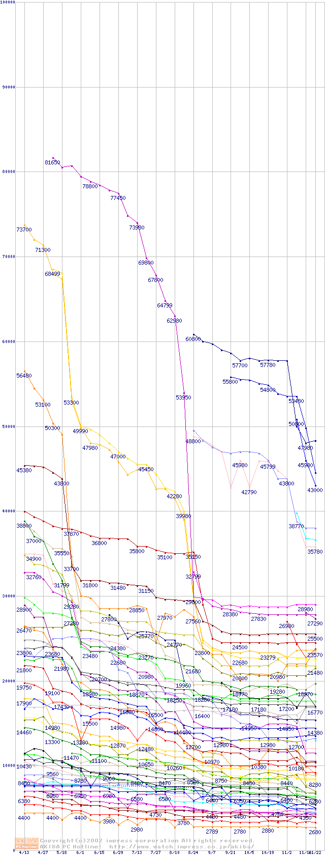 CPU主要製品の最安値推移