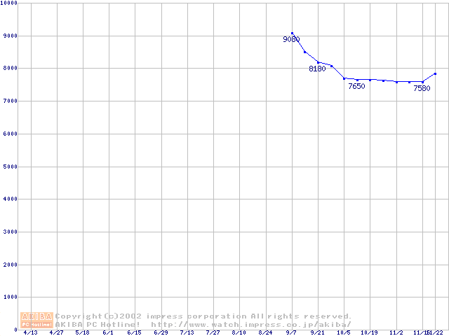 | [↑前グラフ]: | HDD 20GB~30GB未満(7200rpmクラス)の最安値推移 |