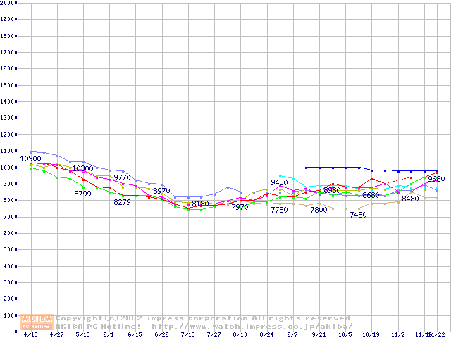 | [↓次グラフ]: | HDD 60GB~80GB未満(7200rpmクラス)の最安値推移 |