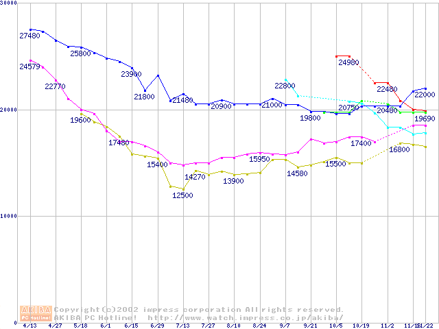 | [↓次グラフ]: | HDD 160GB以上(7200rpmクラス)の最安値推移 |