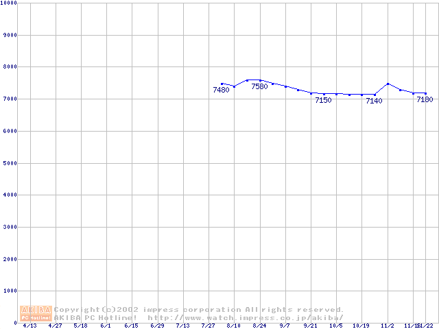 | [↑前グラフ]: | HDD 20GB~30GB未満(5400rpmクラス)の最安値推移 |