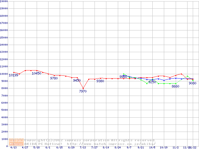 | [↑前グラフ]: | HDD 40GB~50GB未満(5400rpmクラス)の最安値推移 |