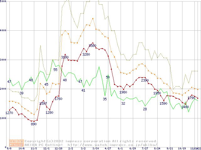 PC133 SDRAM DIMM CasLatency=3の最安値推移