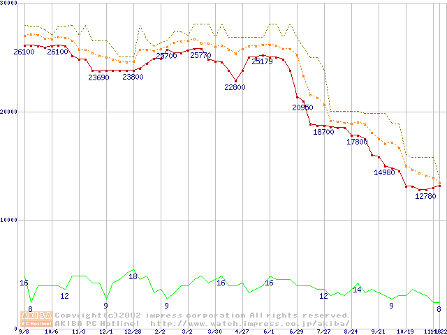 Pentium III 1GHz SECC2 リテールパッケージの価格推移