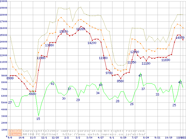 メモリ主要製品の最安値推移