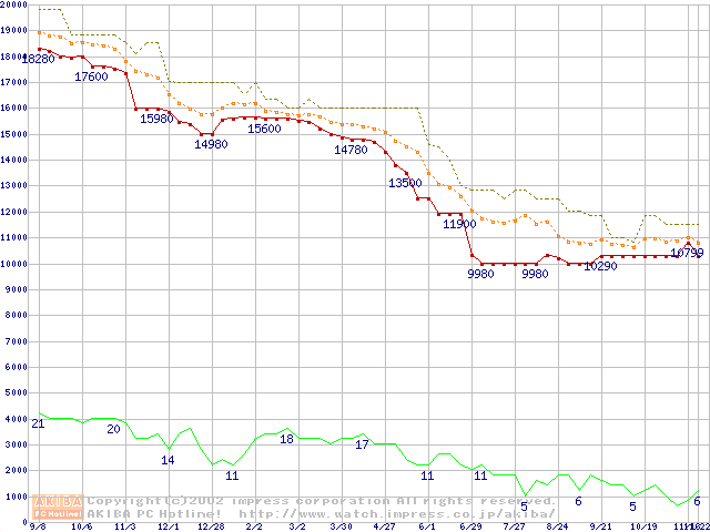 WD Caviar (7200rpm,UltraATA/100,2MB)の最安値推移