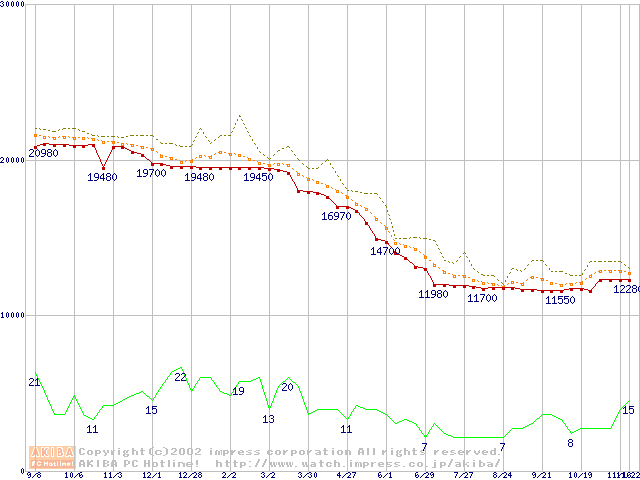 WD Caviar (7200rpm,UltraATA/100,2MB)の最安値推移