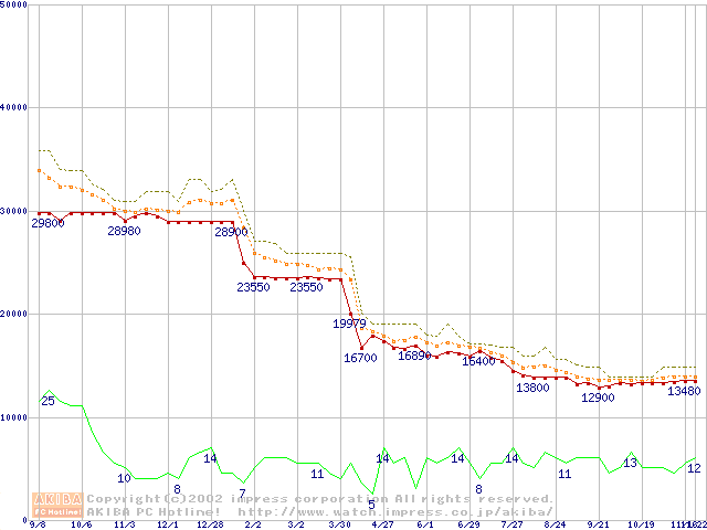 Pentium III 1.20GHz FC-PGA2 リテールパッケージの価格推移