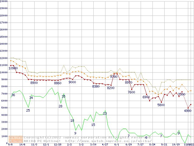 Celeron 1GHz FC-PGA リテールパッケージの価格推移