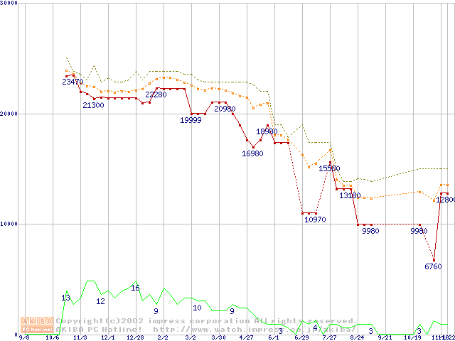 Athlon MP 1500+ (1.33GHz) バルクの価格推移