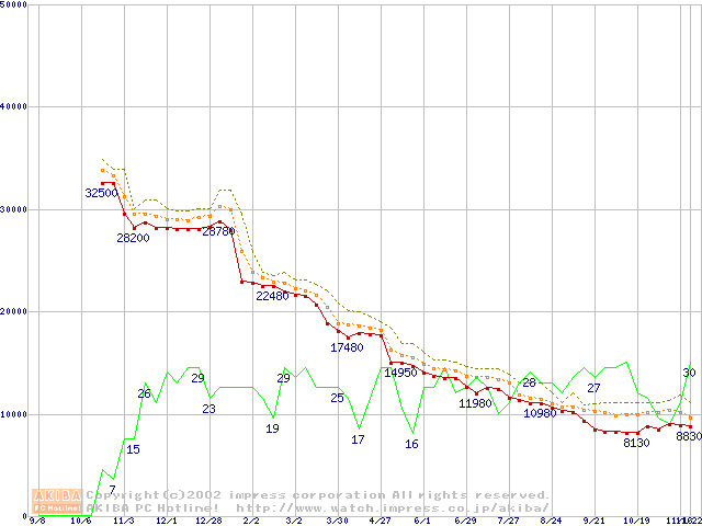 Athlon XP 1800+ (1.53GHz) リテールパッケージの価格推移