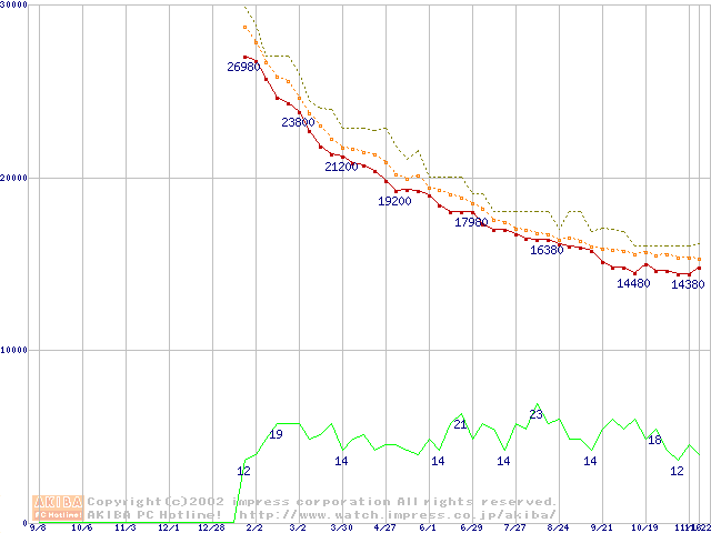 MKシリーズ (9.5mm,4200rpm,2MB,FDB,20GB/Platter)の最安値推移