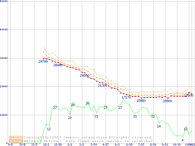 DiamondMax D540X-4G (5400rpm,UltraATA/133,40GB/Platter)の最安値推移