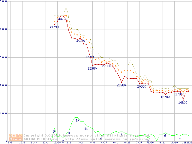 Socket A (OPGA,FSB 266MHz,L2 256KB,Palomino)の最安値推移