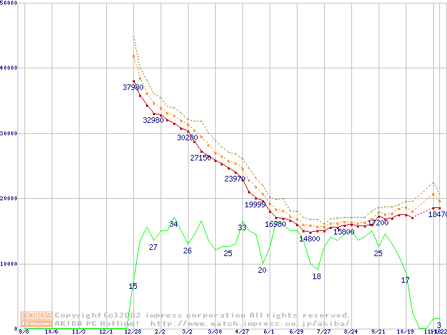Deskstar 120GXP (7200rpm,2MB,UltraATA/100,BB)の最安値推移
