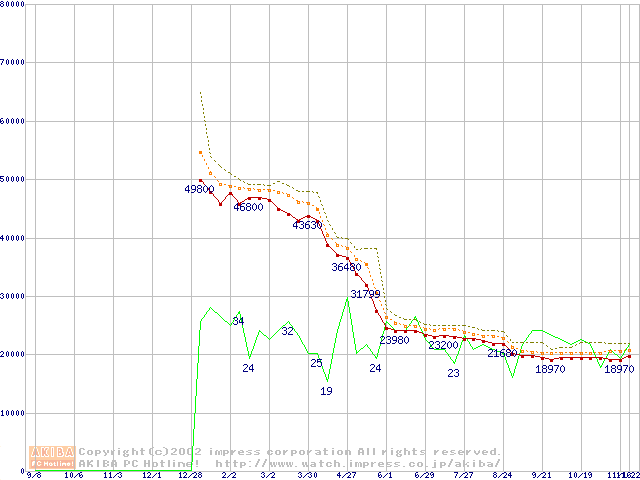 Pentium 4 2A GHz リテールパッケージの価格推移