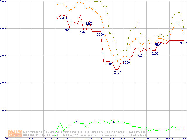 PC2100(DDR266) DDR SDRAM DIMM(CL 2.0)の最安値推移