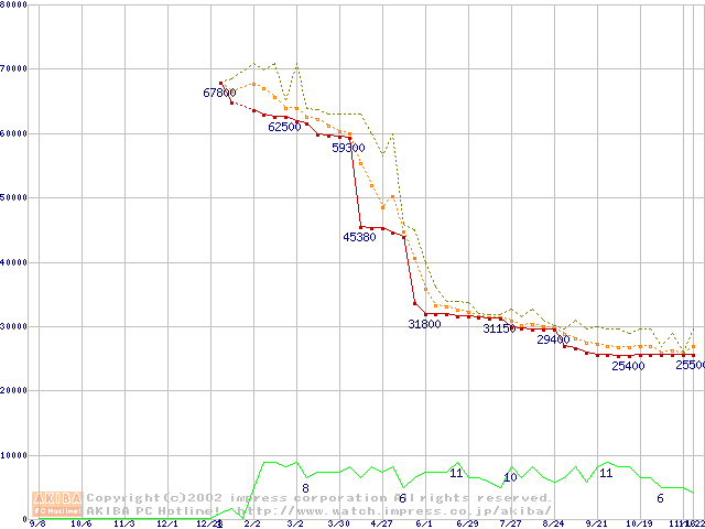 Socket 603 (micro-PGA,L2 512KB,Hyper-Threading,Prestonia)の最安値推移