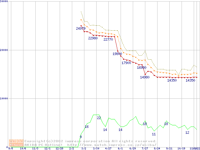 Athlon MP 1600+ (1.4GHz) リテールパッケージの価格推移