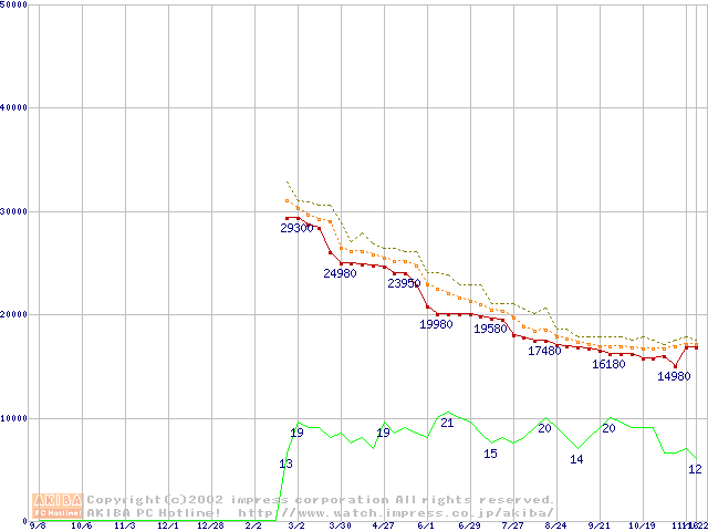 Athlon MP 1800+ (1.53GHz) リテールパッケージの価格推移
