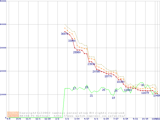 Athlon XP 2000+ (1.67GHz) リテールパッケージの価格推移