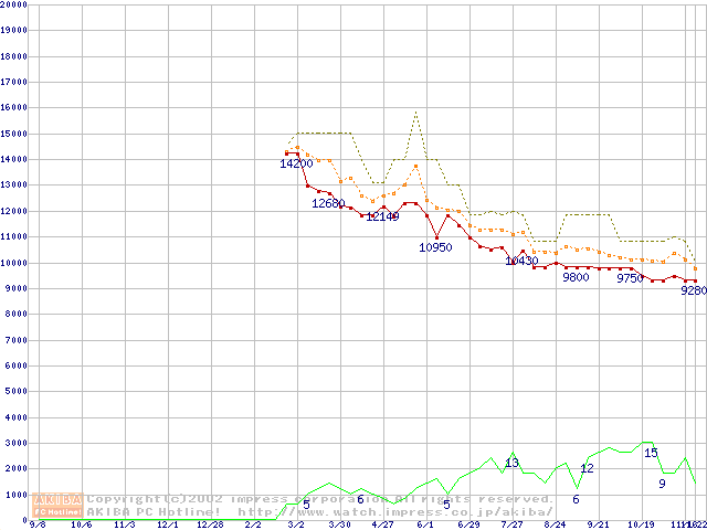 MHRシリーズ (9.5mm,4200rpm,UltraATA/100,2MB,FDB,20GB/Platter)の最安値推移