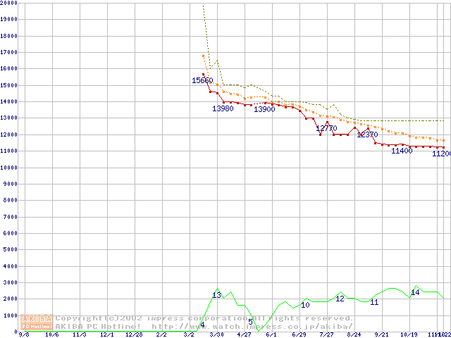 MHRシリーズ (9.5mm,4200rpm,UltraATA/100,2MB,FDB,20GB/Platter)の最安値推移