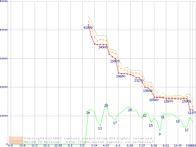 Athlon XP 2100+ (1.73GHz) リテールパッケージの価格推移