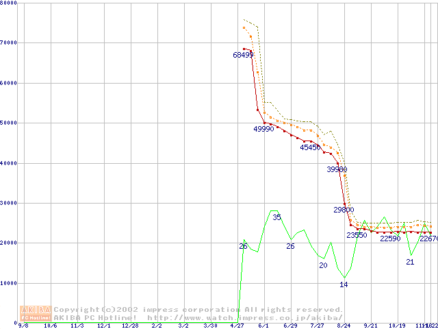 Pentium 4 2.4B GHz リテールパッケージの価格推移