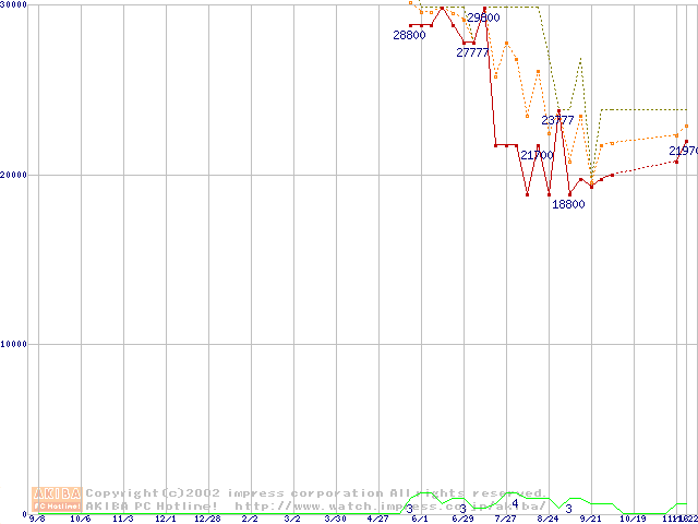 PC2700(DDR333) DDR SDRAM DIMM ECC対応 Registeredタイプの最安値推移
