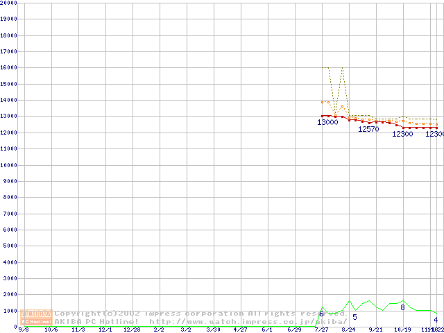 DK23DAシリーズ (9.5mm,4200rpm,FDB,20GB/Platter)の最安値推移
