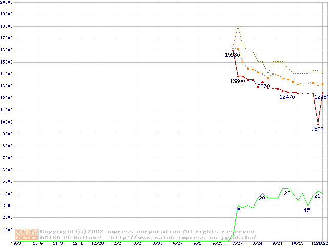 PC1066 DRDRAM RIMM4200(32bit)の最安値推移