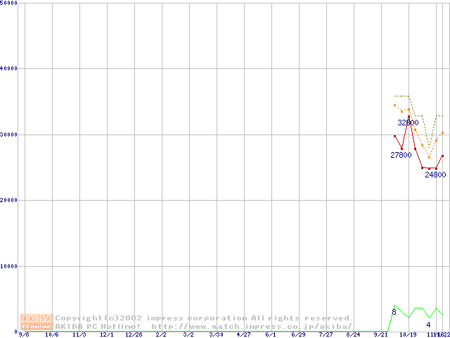 PC3500(DDR433) DDR SDRAM DIMMの最安値推移