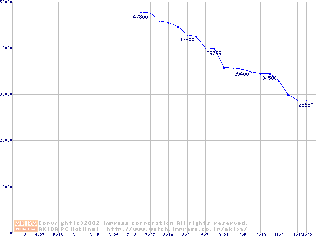 | [↑前グラフ]: | MKシリーズ (9.5mm,5400rpm,16MB,FDB,20GB/Platter)の最安値推移 |