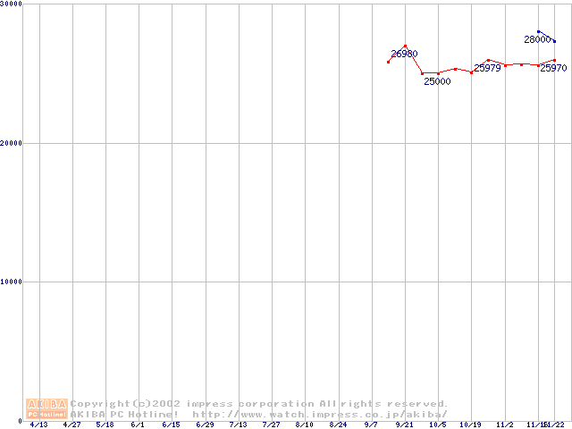 | Socket A (OPGA,FSB 266MHz,L2 256KB,Thoroughbred)の最安値推移 |