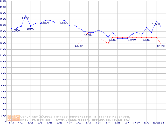 | [↓次グラフ]: | Slot 1 (SECC2,FSB 100MHz,L2 256KB)の最安値推移 |