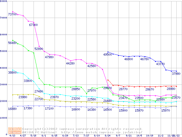 | [↓次グラフ]: | Socket 603 (micro-PGA,L2 512KB,Hyper-Threading,Prestonia)の最安値推移 |