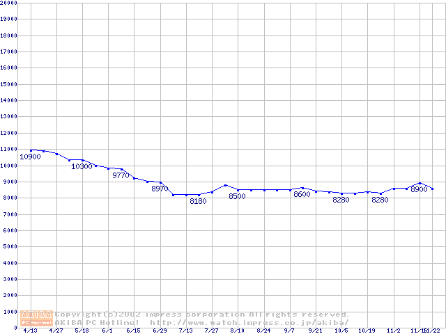 | [↑前グラフ]: | WD Caviar (7200rpm,UltraATA/100,2MB)の最安値推移 |