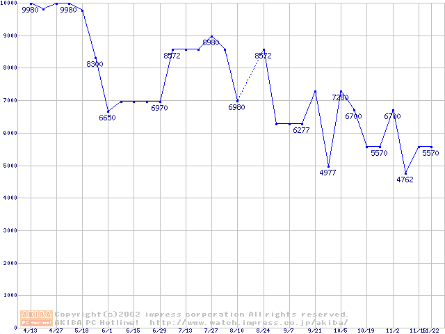 | [↑前グラフ]: | PC100 SDRAM DIMM CasLatency=2の最安値推移 |