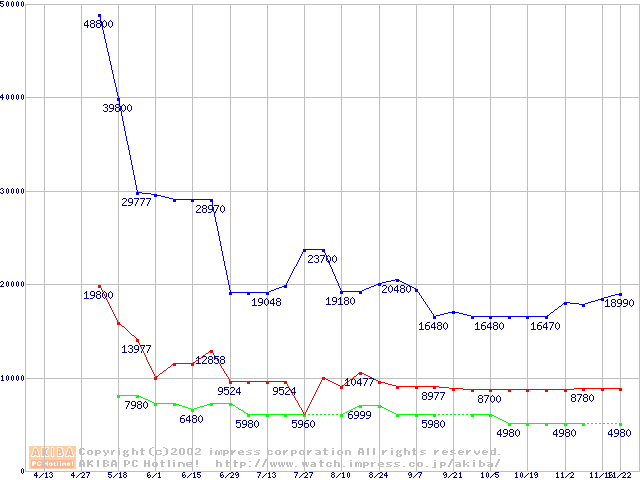 | [↓次グラフ]: | PC3500(DDR433) DDR SDRAM DIMMの最安値推移 |