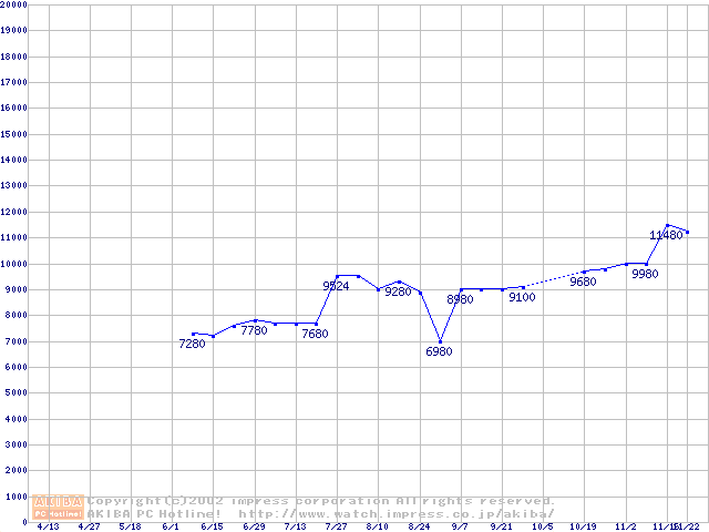| [↓次グラフ]: | PC2700(DDR333) DDR SDRAM DIMM ECC対応 Registeredタイプの最安値推移 |