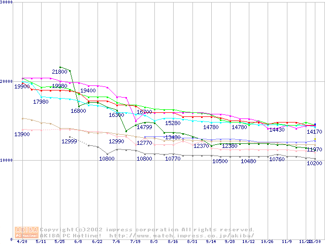 | [↓次グラフ]: | 2.5インチHDD主要製品(最安値1万5千円~2万円未満)の最安値推移 |