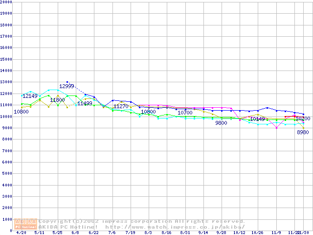 | [↑前グラフ]: | 2.5インチHDD 10GB~20GB未満(9.5mm厚)の最安値推移 |