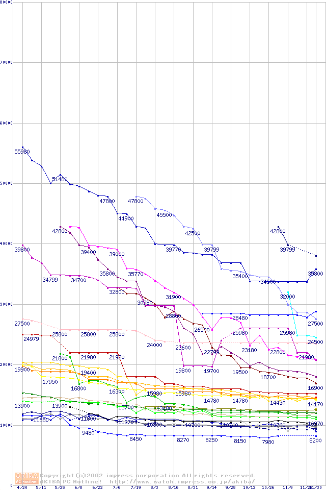 2.5インチHDD 60GB~80GB未満(12.5mm厚)の最安値推移