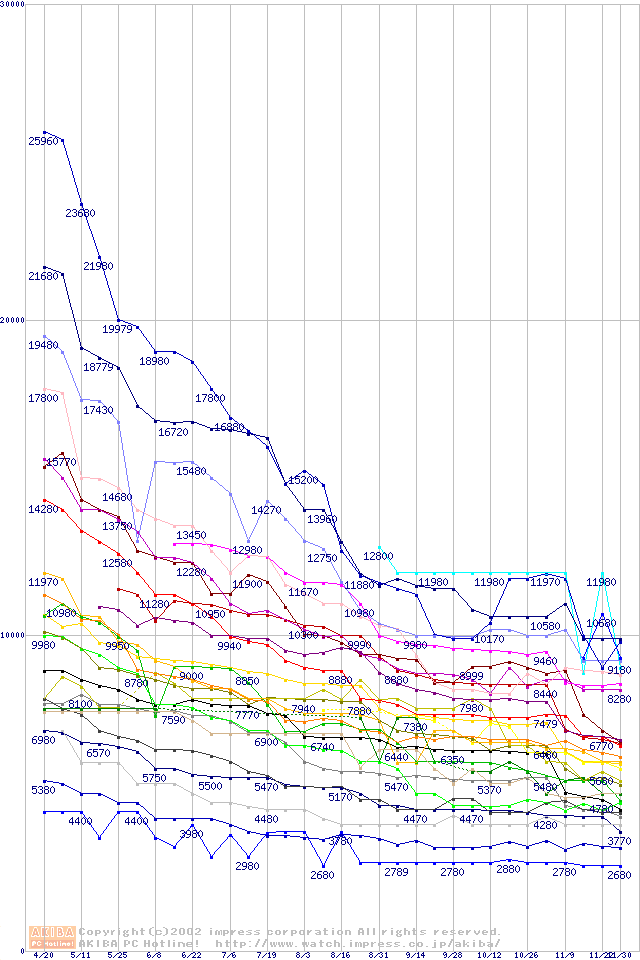CPU主要製品の最安値推移