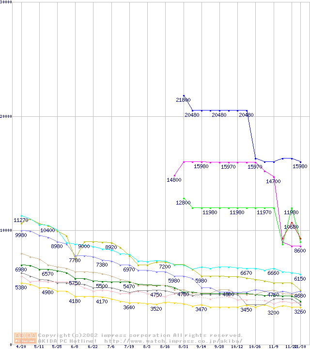 Socket A・FSB 200MHzの最安値推移