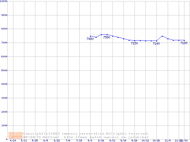 | [↑前グラフ]: | HDD 20GB~30GB未満(5400rpmクラス)の最安値推移 |