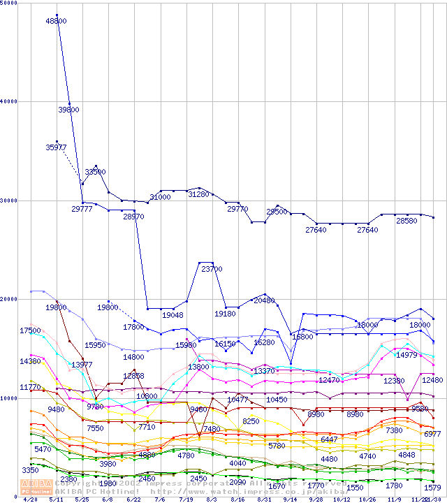 HDD 160GB以上(7200rpmクラス)の最安値推移