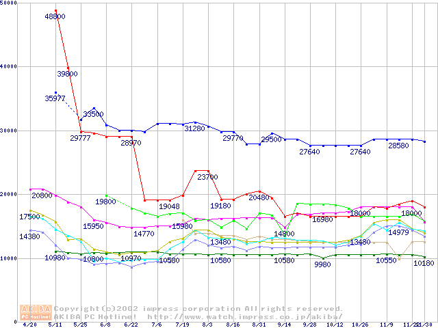 メモリ主要製品の最安値推移